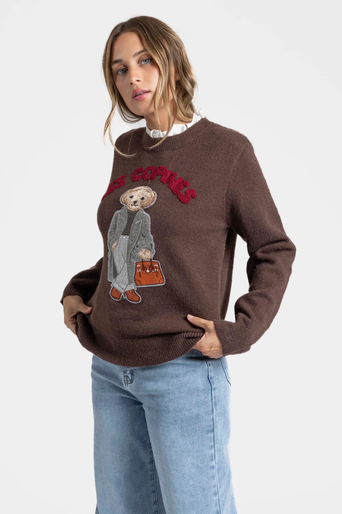 37,90 € 37,90 €Cuello redondo subido. Efecto doble. Manga larga. Oso efecto 3D. Composición: 20% Poliester, 32% Acrílico, 28% Poliamida, 20% Viscosa