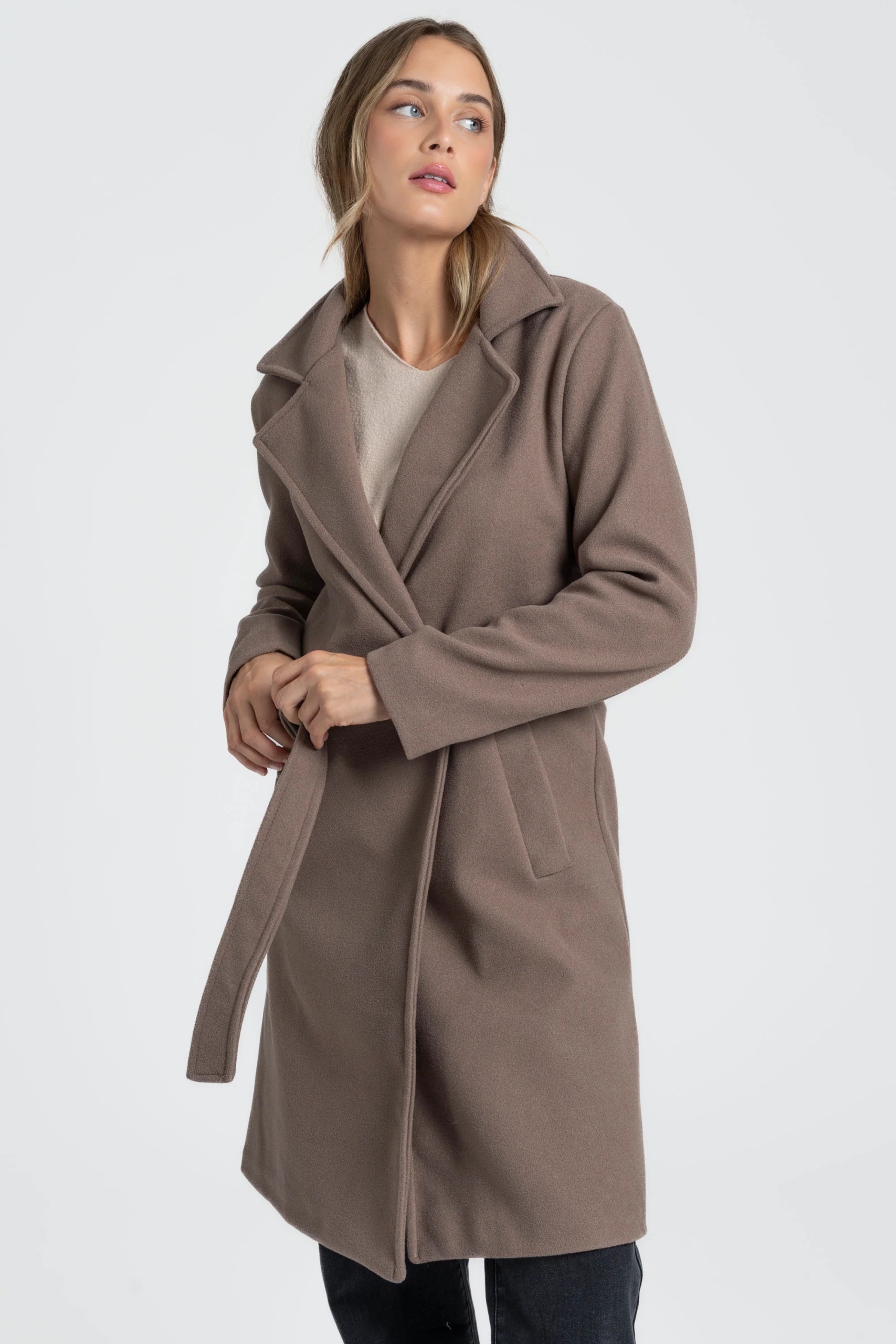 Tejido de paño. Diseño cruzado. Diseño recto. Cuello pico con solapa. Solapas con muesca. Manga larga. Dos bolsillos laterales. Cierre de botones en la parte delantera. Forro interior. Talla modelo: S. Altura modelo: 1,66 m.