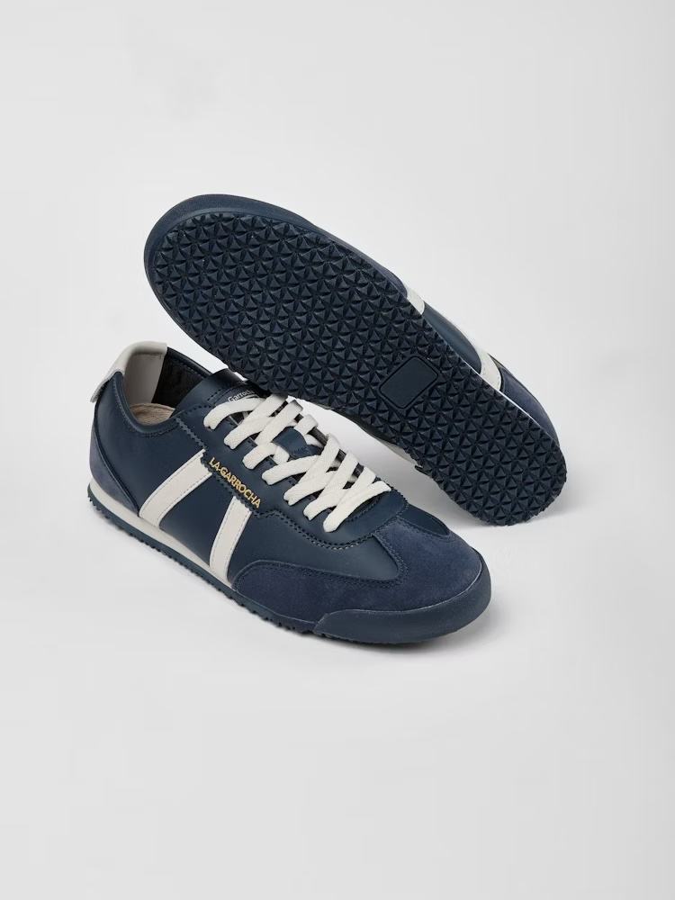 Sneakers para hombre de diseño casual en color marino. Exterior en piel sintética y serraje con bandas y emblema lateral bordado a contraste. Lengüeta de piel sintética con etiqueta textil. Detalle a contraste en la talonera con nuestro caballo. Cierre con cordones textiles. Piso de goma bicolor, cómodo y ligero.